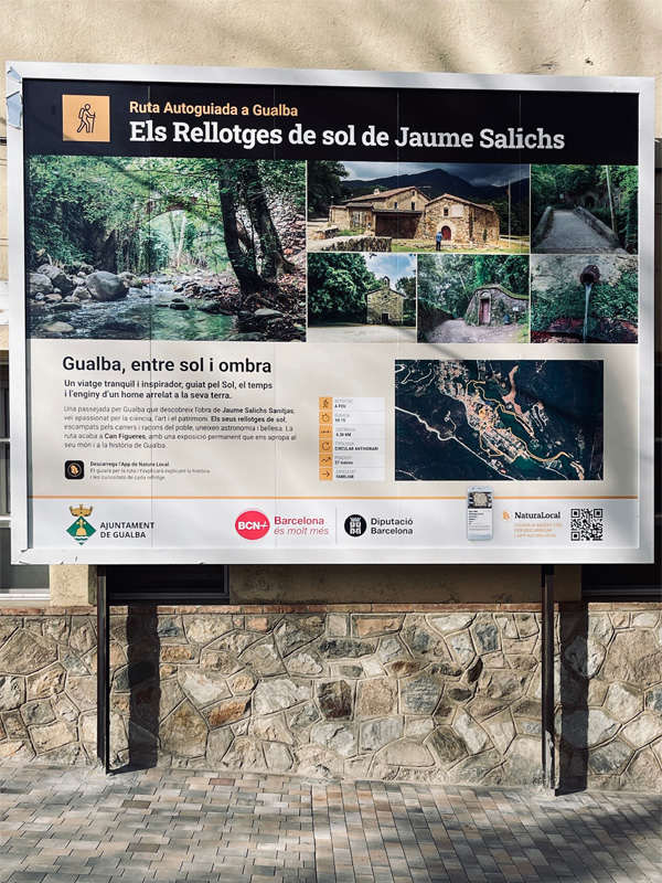 La importancia de esta exhibición, creemos que única, irá acompañada de la inauguración de una ruta autoguiada por Gualba que finalizará en Can Figueras y que podrá recorrerse mediante una app en la que se podrán contemplar las creaciones realizadas por Jaume Salichs en el ámbito de la gnomónica, así como de visitas a las casas accesibles del pueblo con sus relojes de sol.