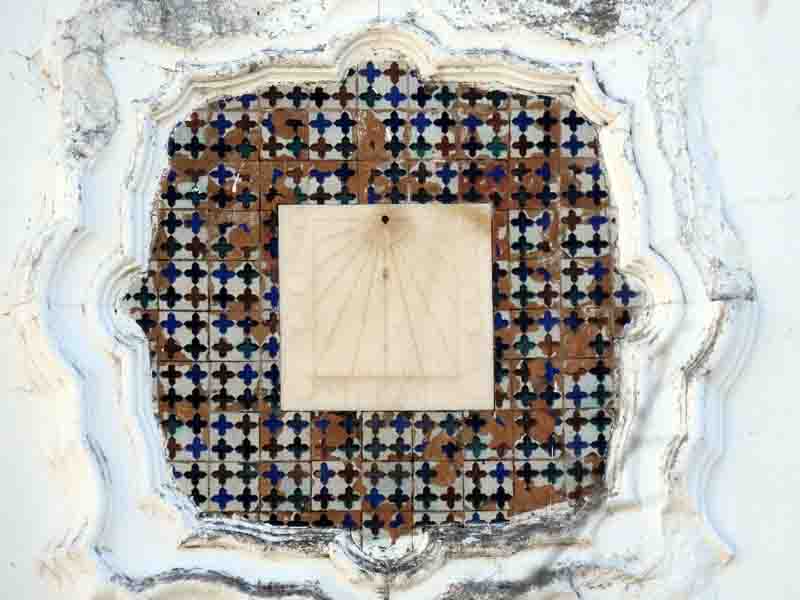 Todo ello para indicar que en su terraza superior, es visible desde el exterior un reloj solar plano de orientación vertical y desubicado, ya que siendo trazado para una pared meridional, la que se encuentra está declinada unos 67 grados a poniente.