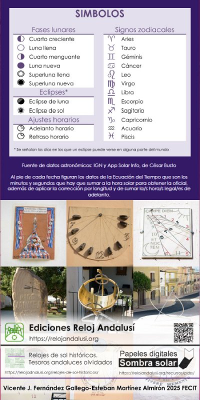 Descárgate gratuitamente el calendario gnomónico 2026 completo, con información sobre la Ecuación del Tiempo diaria y otras efemérides astronómicas.