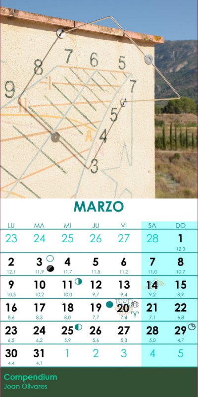 Descárgate gratuitamente el calendario gnomónico 2026 completo, con información sobre la Ecuación del Tiempo diaria y otras efemérides astronómicas.