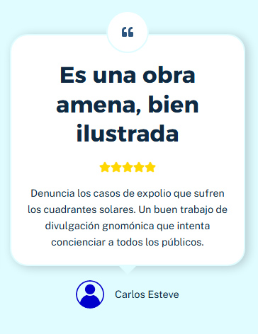 Los beneficios que se puedan obtener por la venta de este libro autoeditado irán destinados al mantenimiento de la web Reloj Andalusí creada con el objetivo de difundir el conocimiento y puesta en valor de los relojes de sol en general y de Andalucía en particular.