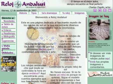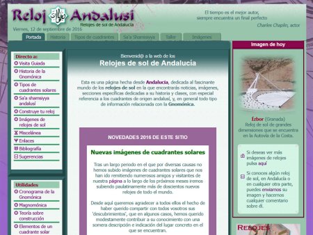 El proyecto en su forma y fondo, lo mantuvimos a lo largo del tiempo si bien en 2005 asumimos como dirección propia la de www.relojandalusi.org manteniendo los cinco grandes apartados e incorporando nuevas funcionalidades: