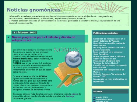 • Durante 2005 y 2006 creamos el blog Noticias Gnomonicas, en un servidor externo, en el que, con más de 70 entradas, subimos información sobre Exposiciones, Concursos, Jornadas, Publicaciones, inauguraciones, denuncias y restauraciones.
